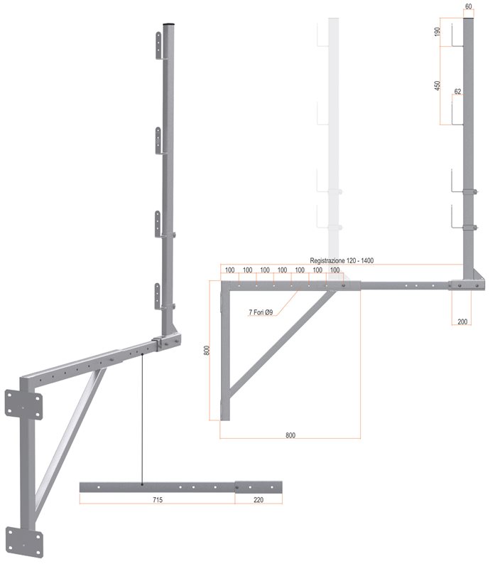 ASTA P/PARAPETTO A MENSOLA ML. 0.12-0.62 mod. 115/C “CSC”