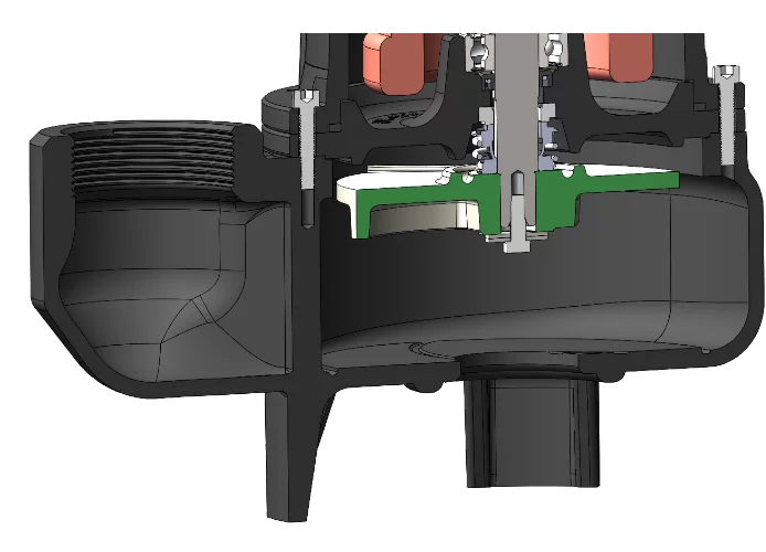 Per sollevamento acque reflue nere con corpi solidi o filamentosi in sospensione, con girante vortex.