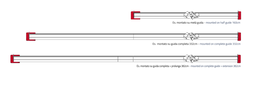 La guida in alluminio anodizzato è composta da due estrusi perfettamente rettilinei ad aggancio rapido.