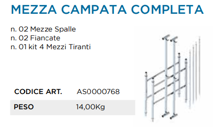 PONTEGGIO ACCIAIO Z3 MEZZA CAMPATA COMPLETA (2 spalle, 2 fiancate, 4 tir